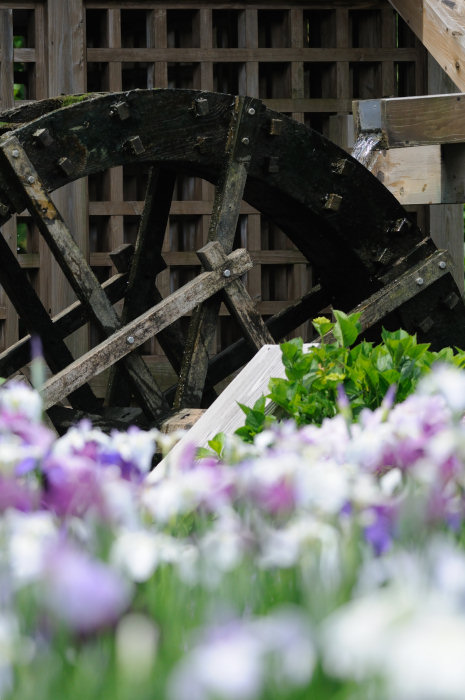 水車背景は、水車の前で記念撮影をする人や、邪魔にならないように望遠レンズで通路の外側から狙っていたので、前で三脚広げちゃう人も居たりで、しばらく我慢でこらえた結果やっと巡って来たシャッターチャンスでした。