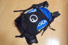 深さは 約42cm で,SOURCE のハイドレーションパック 2L (19.5cm x 35.5cm) を入れるとこんな感じになります.3L だと42.5cm なのでギリギリか,ちょっときびしいかなぁ?