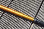 グリップはコルクとEVA樹脂で,握りやすく手良い感じ.最上段はカムロック式のテレコピックで全長を 110cm~120cm の範囲で調整可能です.