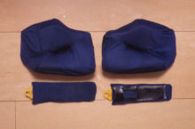 袋詰めで同梱されていた古い内装は,洗濯した後で少し潰れていた頬パットのスポンジを調整して予備としてストック.