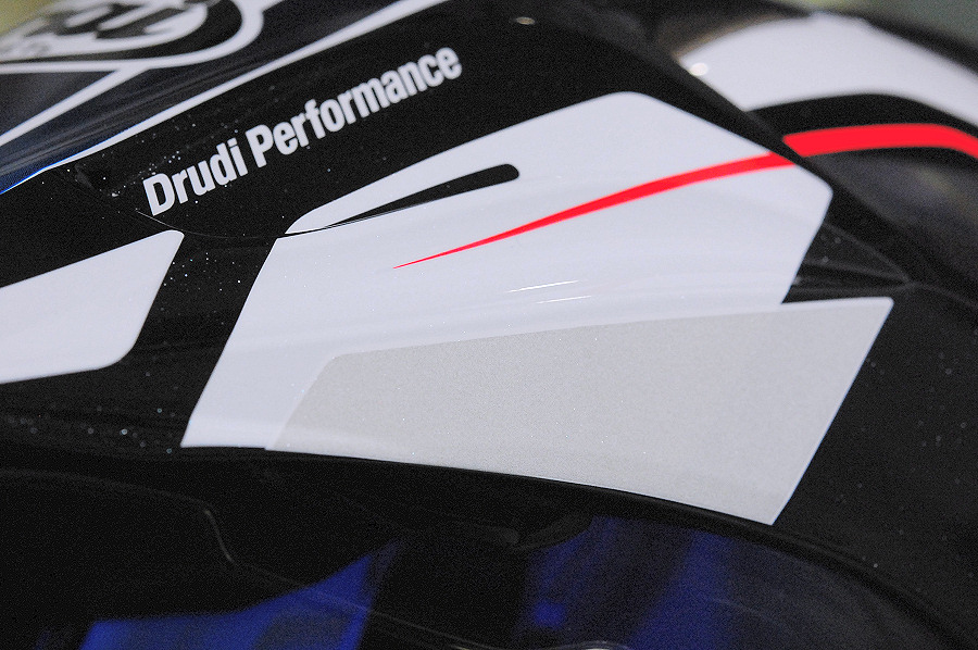 マウスシャッターは、穴が追加。両サイドのスリットにも開閉機能がついて、空気の通し方が変わったようです。また、以前使っていたRX7シリーズやRAPIDE-ORでなにげに快適装備だったエアロフラップの追加で風の巻き込みが低減されてます。昨今のヘルメットには標準装備なエマージェンシータブも追加されていてますね。