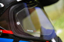 シールドはライトスモークベースのブルーミラーに交換。全体的に黄色寄りの視界になり、眩しさを適度に低減しつつ夜でも見易いので、購入したヘルメットはだいたいこのタイプに変更してます。今回、PINLOCK 曇り止めシートも導入しました。これ、すごく良いですね。息を吹きかけても全く曇る気配なし。TX-MOTARD にも付けていた V-Cross用 ノーズディフレクターも追加しましたがが、PINLOCK 曇り止めシートの効果が絶大なので、こっちの効果はあまり感じられないかも。