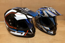 メーカーにOHに出してリフレッシュした Arai TX-MOTARD-VDB も、かれこれ4年が経過。縁ゴムがごっそり剥がれたりとあちこちへたりが目立ち始め、途中でOHしているとは言えさすがに購入から10年以上経過していることもあり、TX-MOTARD の後継モデルにあたるTOUR-CROSS 3 を購入しました。