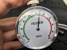 で、4シーズン目に入ったスタッドレスはというと、廉価な硬度計なので誤差もあるだろうし目安程度ですが、硬い部分の硬度は55くらい。