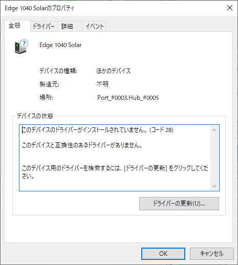 ついこの間まで問題なく認識して使えていた PC ( Windows10ESU と Windows11の両方)で試しても同じ状況なので、考えられる原因としては Edge 1040 本体の不具合か、FW の自動アップデート後にデバイス情報がおかしくなってしまったか...