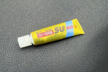 プラと金属の接着の為なんでもくっ付く万能接着材、コニシボンドの「ウルトラ多用途S・U プレミアムソフト クリヤー」を使用。あまりガッチリと固定してしまうと何かあった時に取り外せなくなってしまうので、必要最小限の量で貼り付けて完成。